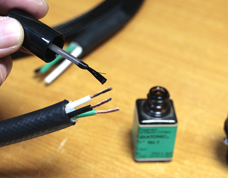 ケーブルを留める際に、接点にカーボン入りのコンタクトオイルを塗布しておきます。