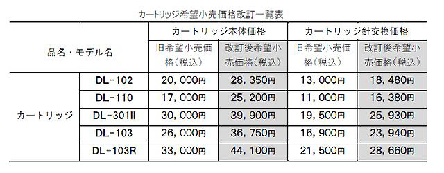 DENONカートリッジの代名詞 DL-103 DL-102 を始め、スタンダードモデルが10月より 30%程度 の値上げとなります