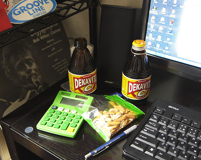 デスクの上はっ!!! 2011.06.17 こんにちわ、ナックオーディオ 中村 です。 いきなりですが、私のデスクの上です!! はいっ。デカビタC大好きなんですね! 一日に何本でも飲めます! 最近「柿の種ワサビ」うまいすぎます!まいう~ とても仕事しているとは思えませんが。。。。 一応仕事してます!!!