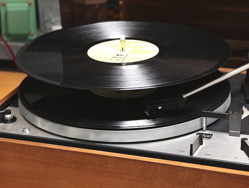 一枚のレコードの演奏が終わる度に、パタン、パタンとレコード盤が上から落ちてくる仕組みがあるんですねぇ