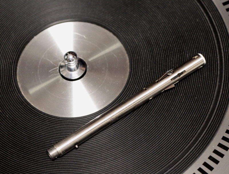 そして付属のシャフトを差し込んでレコードを積み重ねて設置します。