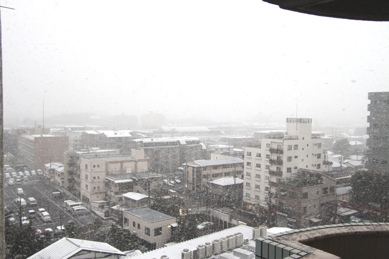 写真は先日雪が降った時の事務所からの景色ですが。。。
