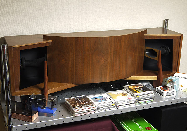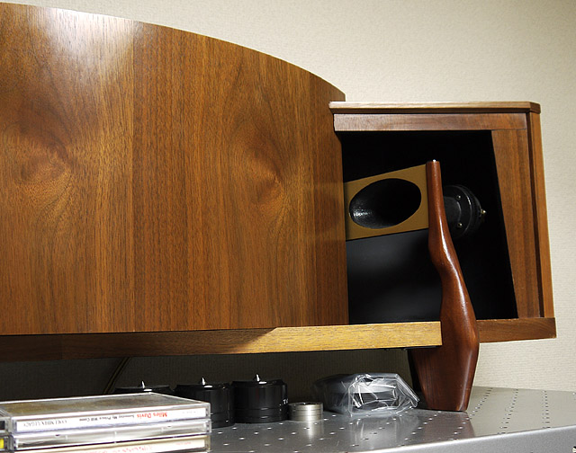 写真では暗くてわかりにくいのですが、MIDホーンの奥に小っちゃいツイーターが仕込まれていますよ。