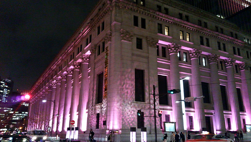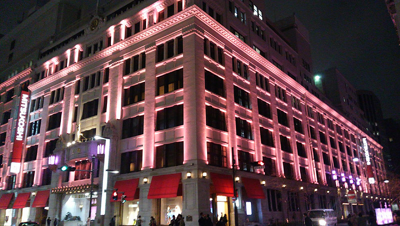 歴史ある建造物の三越本店と三井本館がキレイにピンクです!