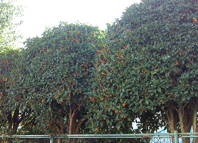 毎朝 通勤路の近所の小学校にはキンモクセイが咲きはじめ、いい香りが漂ってきます。