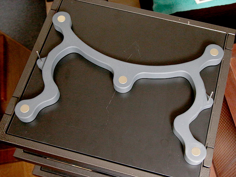 ベースフレームと強化ガラスに5個ずつ ネオジウムマグネットを配置しています。