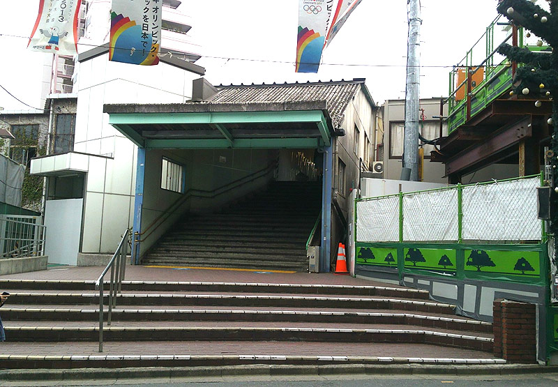 写真は仮設の小田急線/京王線の共通駅の入り口です。