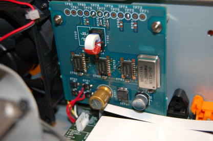 そして、DAC部の基盤には追加されたであろうクロック基盤が取り付けてあります。