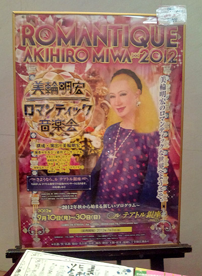 先日、銀座にあるパルコ劇場「ル テアトル銀座」(旧セゾン劇場)にて行われていた 三輪明宏さんのコンサート「ロマンティック音楽会」に出向いてみましたよ。