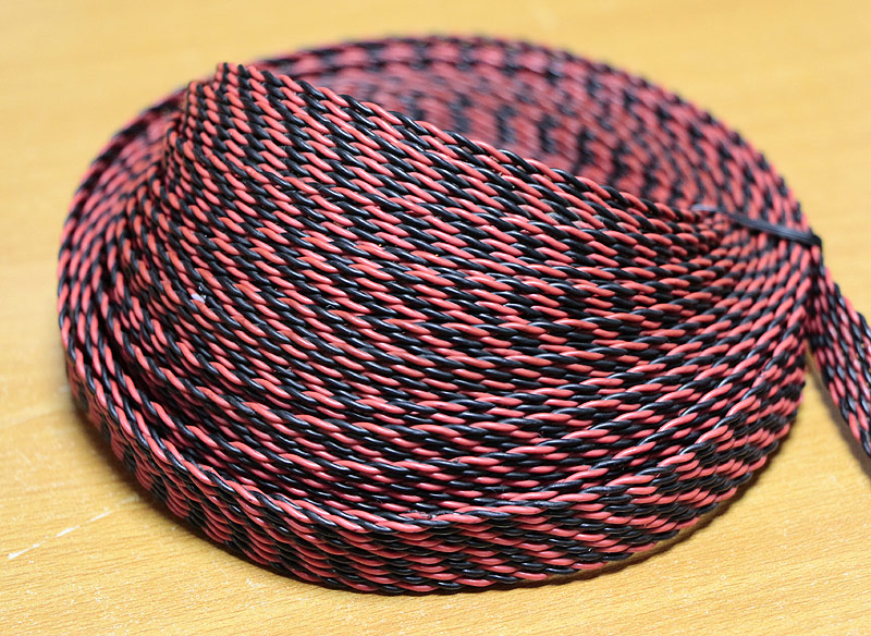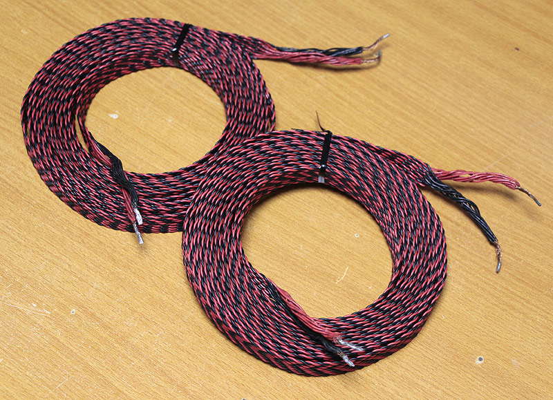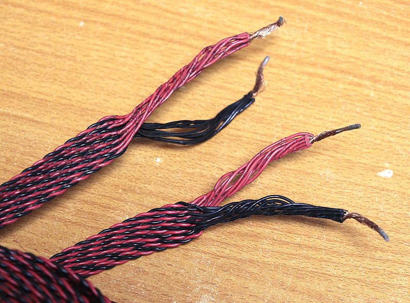 なんだか古そうな編み込み状のスピーカーケーブルです