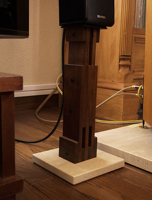 このスタンドも設計した寸法を木工工房でウォールナット材を切り出し、自作されたそうです。