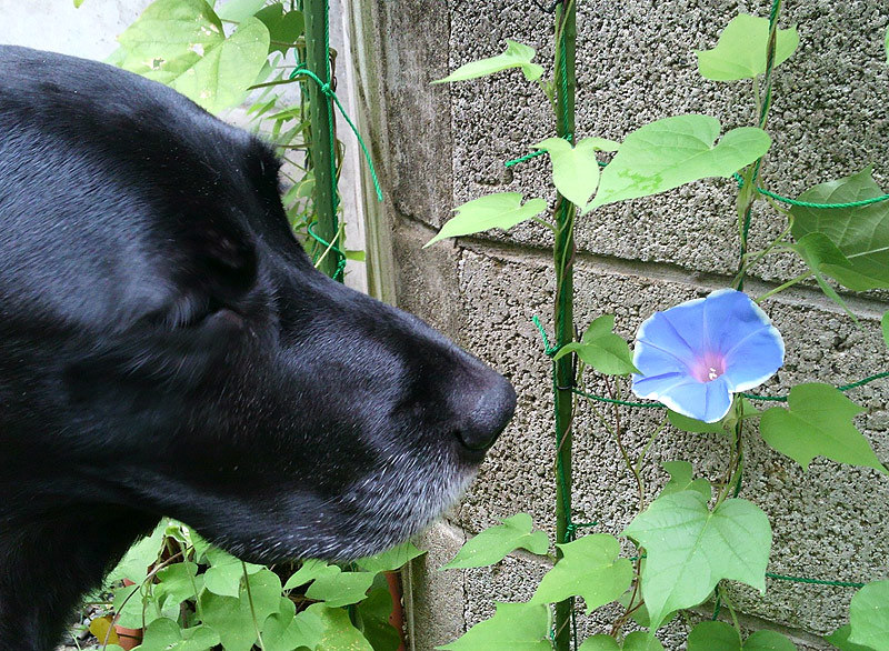 愛犬ケンゾウ君もじっと見つめて 夏 を感じているようです。