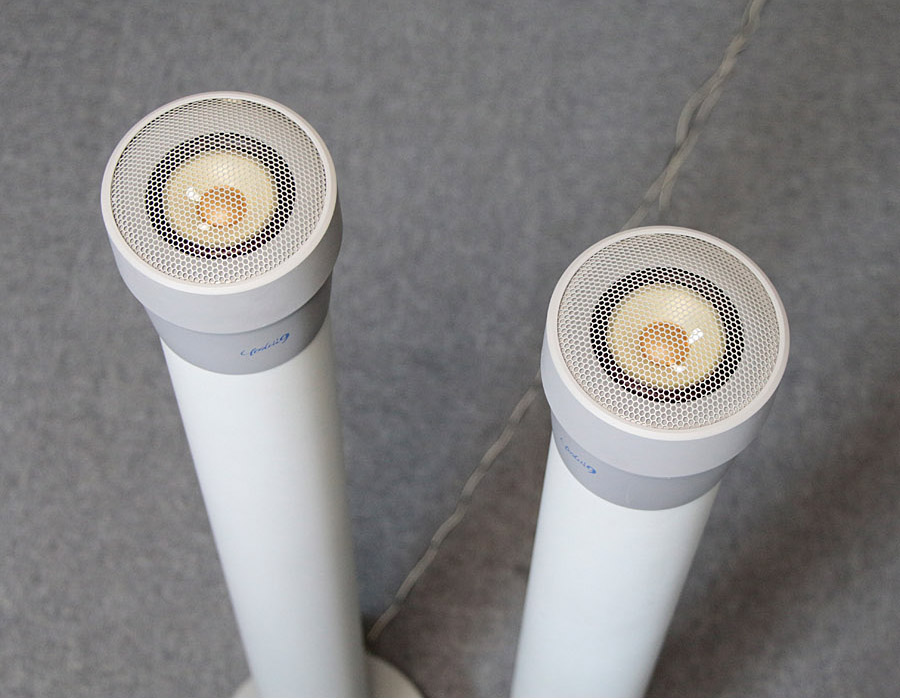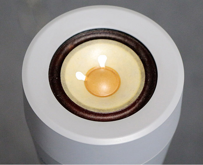 煙突の上部に上方向を向いたフルレンジユニットを設置した無指向性スピーカー