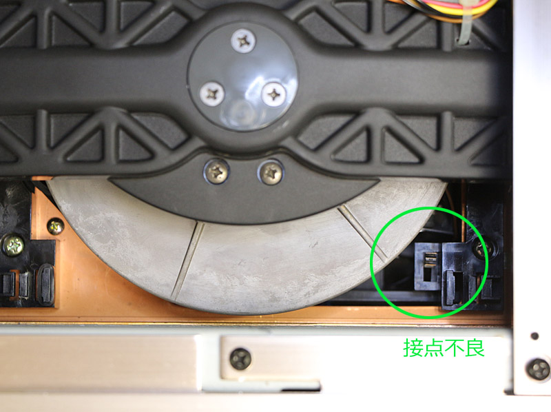 トレーを取り出すと 正面右手前に トレーの状態を確認する意味のセンサー役割がある接点があります。