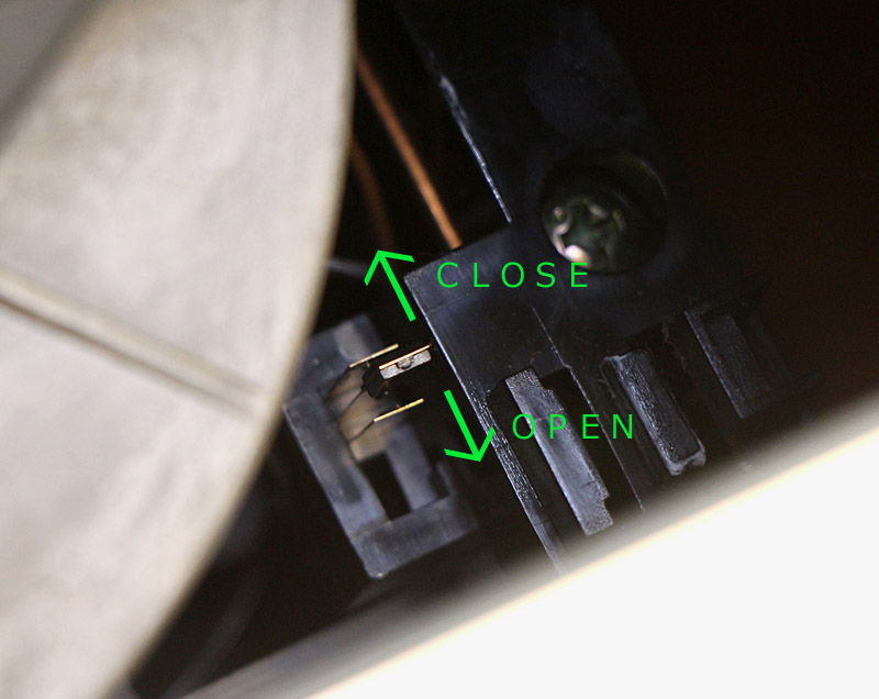 センサーの真ん中のプレートが奥側に接していないと 当然「CLOS」動作が発動する。