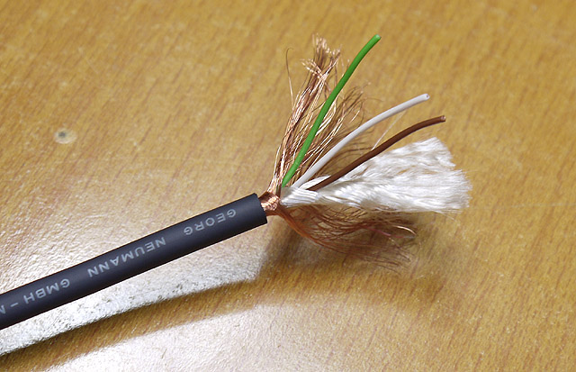 このケーブルはノイマンのマイク用ケーブルとしての頻度が高いのですが、3芯ゆえバランス接続にも臨機応変に対応できるので、録音スタジオではラインケーブとしても重宝されているケーブルです。