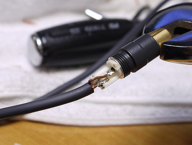 とりあえずケーブルを適度な長さでカットしホット/コールドをハンダ付けしてみます。