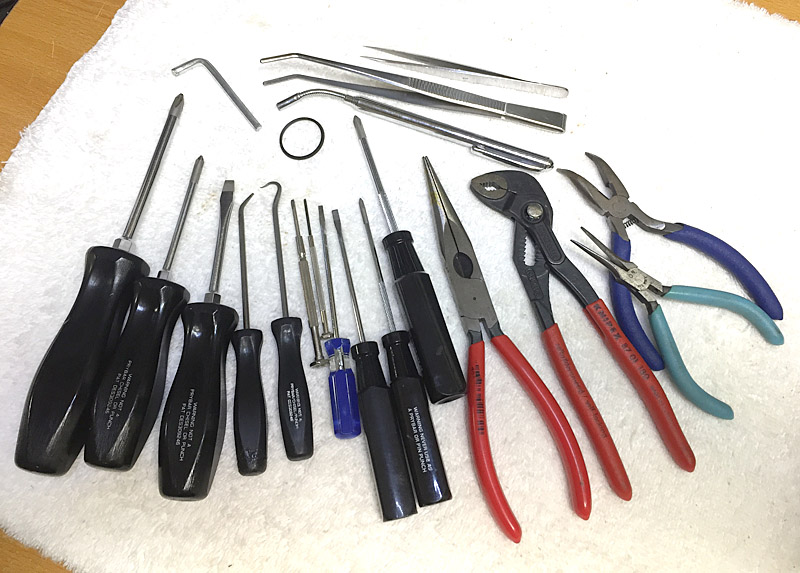あとは プライヤー や ピンセット 類も重要ですねぇ 細かいので 指が入らない場所が多いので