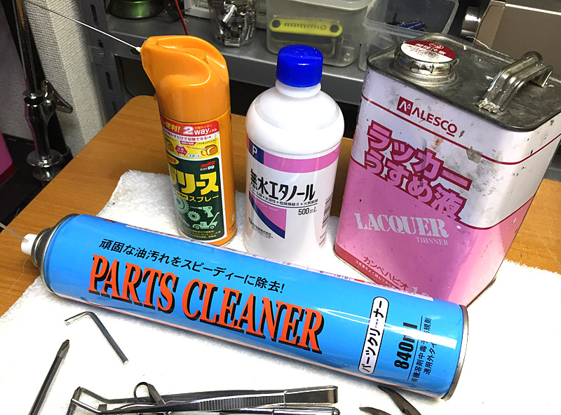 あと、写真にはありませんが、鉱物系のグリスやら、接点部の薬品も使ってます。