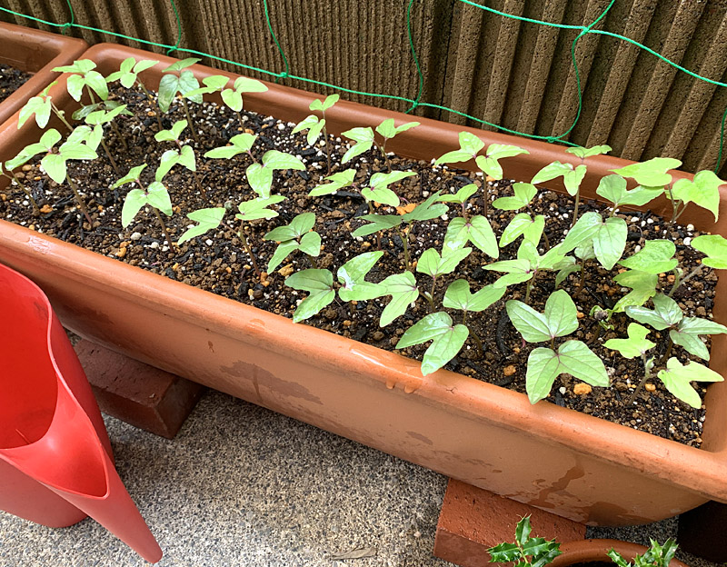 毎年種を撒いている 朝顔 の芽がやっと出始めました。